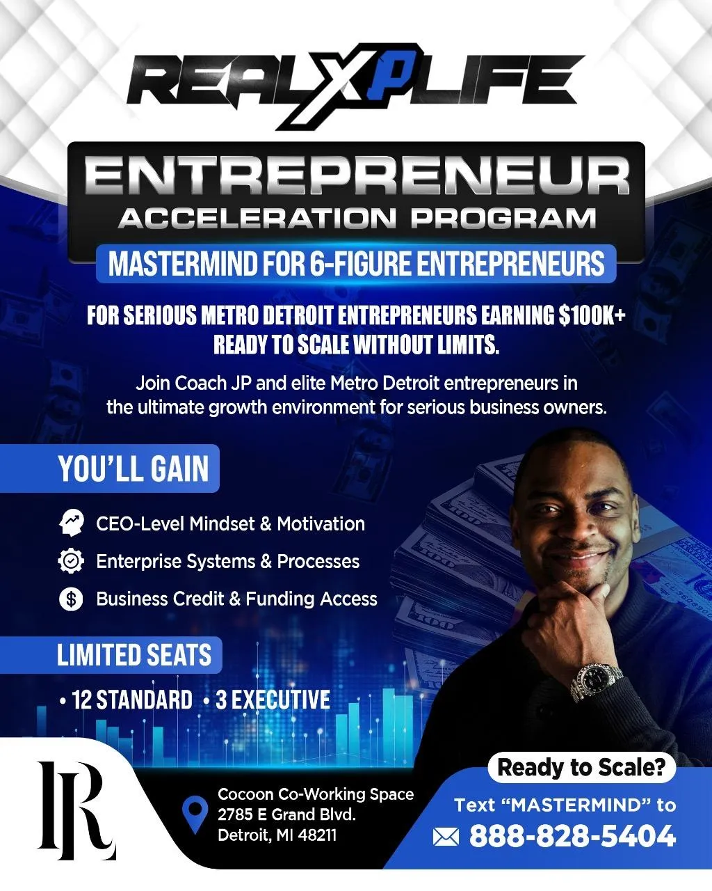 The Real Life XP: Entrepreneur Mastermind is an exclusive growth circle for serious entrepreneurs ready to level up. Led by Coach JP and powered by Real Life Business Solutions, this mastermind blends accountability, collaboration, and advanced strategy to help you break through barriers and scale with confidence. It’s where big goals meet real action — surrounded by other driven business owners who understand the grind and the growth.