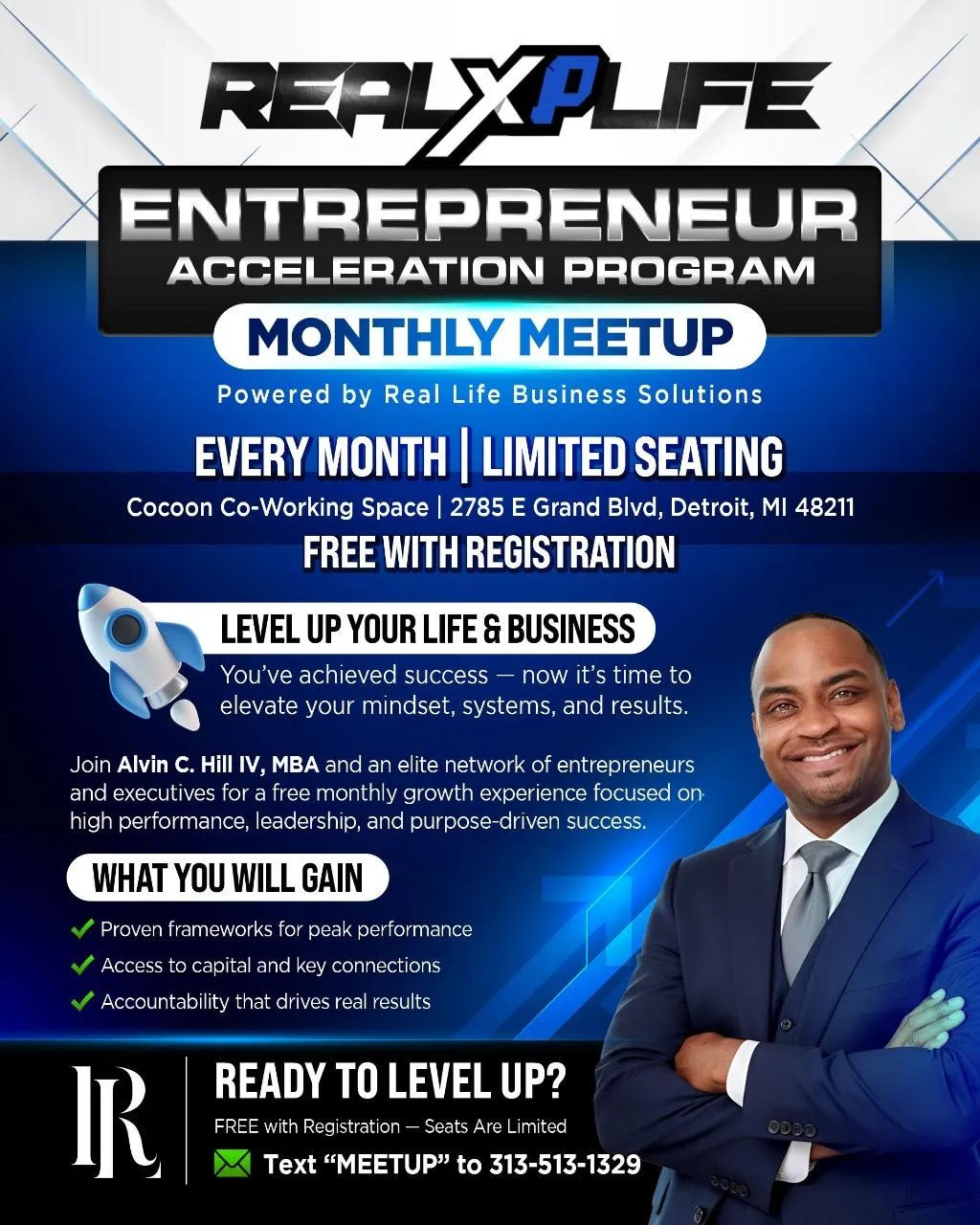 The Real Life XP: Entrepreneur Monthly Meetups are free, in-person gatherings designed to help local entrepreneurs connect, grow, and stay motivated. Hosted by Coach JP and Real Life Business Solutions, these sessions create a space for real conversations about business, mindset, and strategy — without the fluff. Come network, learn, and share ideas with other purpose-driven entrepreneurs who are building businesses that work in real life.